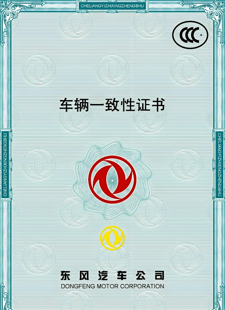 5、车辆一致性证书:证明车辆参数与公告信息一致,部分地区上牌时需要。